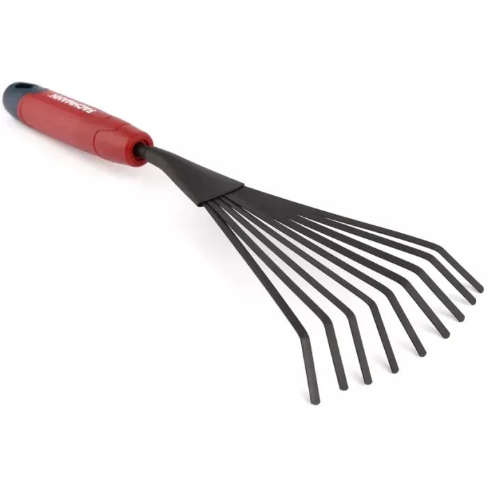 Веерные грабельки выполнены из высокоуглеродистой стали с антикоррозийным покрытием для эффективной и долговечной работы даже во влажной среде.