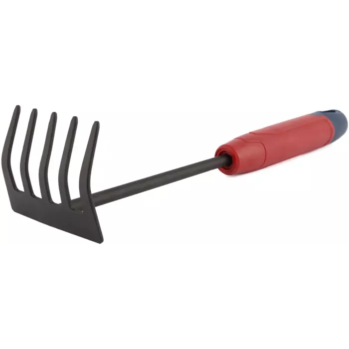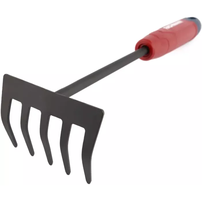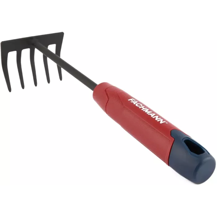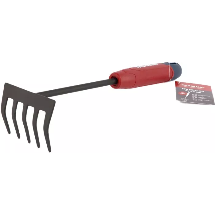 Мини-грабли изготовлены из высокоуглеродистой стали с чёрным покрытием. Ширина рабочей части — 8,5 см, что позволяет выполнять задачи даже при плотной посадке, не повреждая растения. Благодаря защите от коррозии грабельки Фахманн можно смело использовать для аэрации почвы после полива.