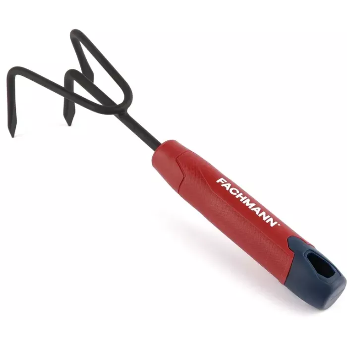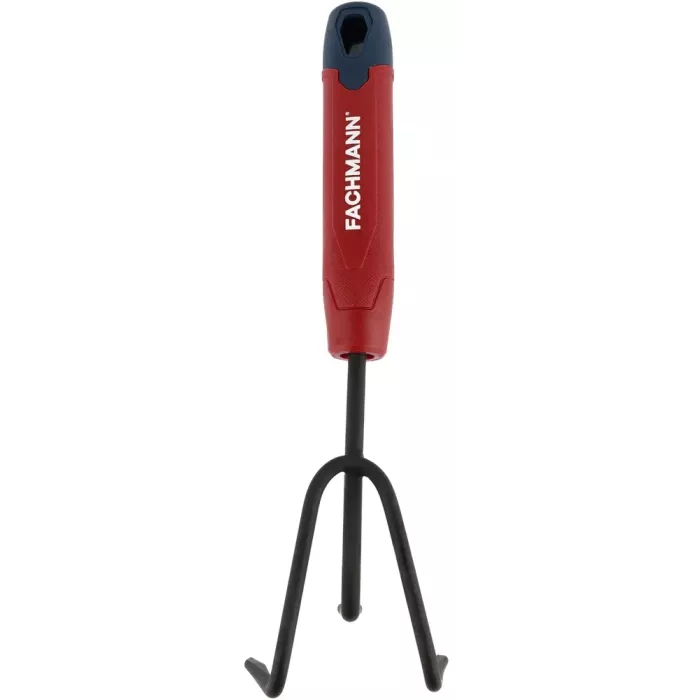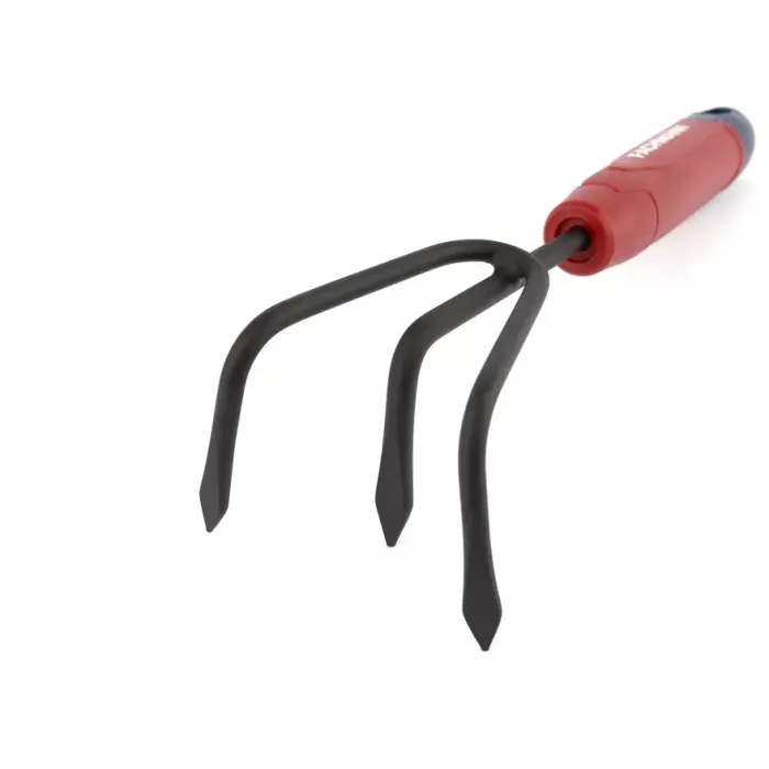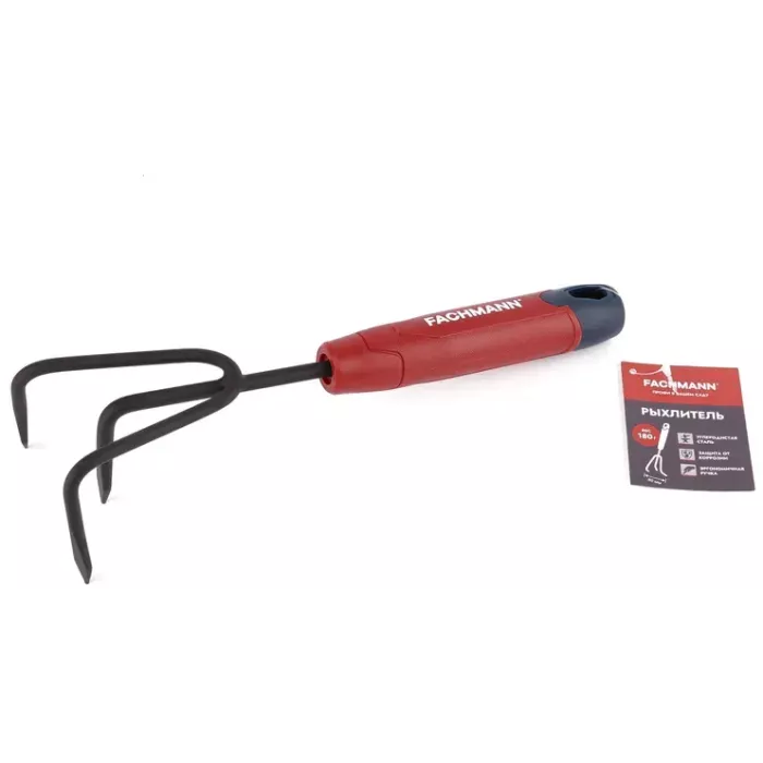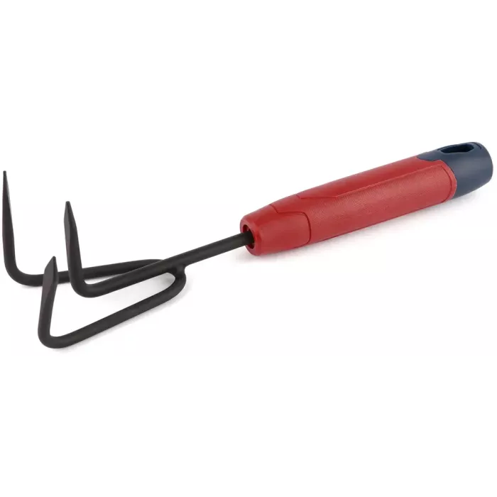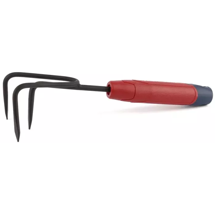 Ручной культиватор из углеродистой стали с чёрным антикоррозийным покрытием поможет быстро разбить плотные куски грунта и насытить верхние слои почвы воздухом. Рабочая часть состоит из трёх зубьев — острых, но при этом безопасных для садовода.