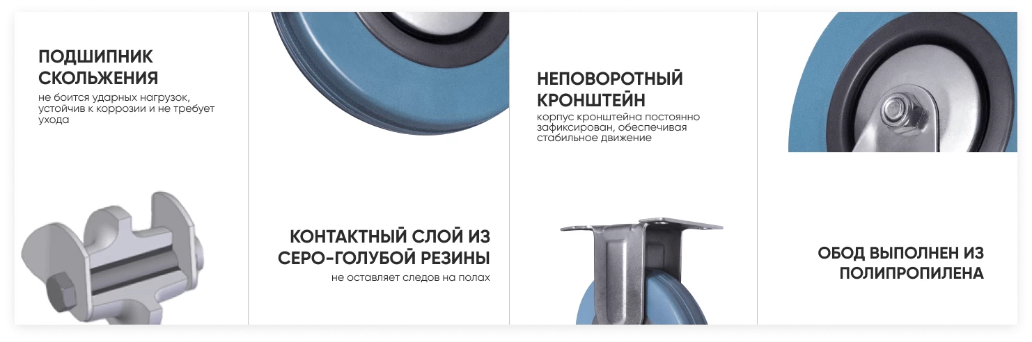 Аппаратное неповоротное колесо FCg 25 с полипропиленовым ободом и литой шинкой из термопластичной серой резины. Устойчиво к износу и не оставляет следов торможения на поверхности. Диаметр колеса 50 мм, ширина обода 18 мм. Подшипник скольжения в ступице обеспечивает лёгкий ход. Надёжный и прочный кронштейн из оцинкованной стали. Грузоподъёмность 25 кг даёт возможность использовать их в медицинском оборудовании, мебели для больниц, тележках для сервиса, ином лёгком оборудовании.