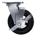 Большегрузное обрезиненное поворотное колесо SСdb 42 с цельнолитым чугунным ободом и шинкой из жёсткой литой резины. Устойчиво к износу и не имеет низкую остаточную деформацию. Диаметр колеса 100 мм, ширина обода 50 мм. Роликовый подшипник в ступице обеспечивает лёгкий ход. Усиленный поворотный кронштейн из оцинкованного металла c тормозом. В поворотном механизме двухрядный опорно-поворотный подшипник. Тип крепления – площадка. Грузоподъёмность 130 кг даёт возможность эксплуатации в большегрузных промышленных тележках, тяжёлом складском и промышленном оборудовании.