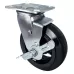 Большегрузное обрезиненное поворотное колесо SСdb 80 с цельнолитым чугунным ободом и шинкой из жёсткой литой резины. Устойчиво к износу и не имеет низкую остаточную деформацию. Диаметр колеса 200 мм, ширина обода 50 мм. Роликовый подшипник в ступице обеспечивает лёгкий ход. Усиленный поворотный кронштейн из оцинкованного металла c тормозом. В поворотном механизме двухрядный опорно-поворотный подшипник. Тип крепления – площадка. Грузоподъёмность 280 кг даёт возможность эксплуатации в большегрузных промышленных тележках, тяжёлом складском и промышленном оборудовании.