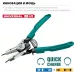 Съемник Kraftool 22813, предназначен для монтажа и демонтажа внутренних или внешних стопорных колец. Наконечники с разным диаметром для различных размеров стопорных колец. Легкое переключение с внутренних на внешние кольца и обратно. Возвратная пружина упрощает работу. Отделения для хранения наконечников в рукоятке. В комплект входит шестигранный ключ для замены наконечников. Маслобензостойкие рукоятки с нескользящим покрытием. Легкое переключение – сдвиньте язычок и сожмите ручки, чтобы снять/наложить внутренние или внешние кольца.
