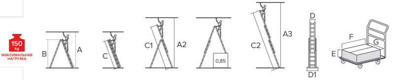 | Артикул | Ступ. | А, м | А2, м | А3, м | В, м | С, м | С1, м | С2, м | D, м | D1, м | E, м | F, м | G, м | Вес, кг |