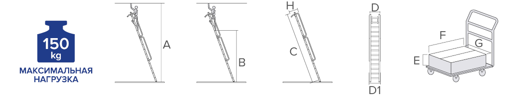 Артикул Ступени A, м B, м C, м D, м D1, м E, м F, м G, м H, м Максимальная