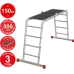 Профессиональный трансформер «4 в 1» с увеличенной шириной 500 мм. Варианты использования: приставная лестница, Г-образная с опорой на стену, двухсторонняя стремянка, помост со съёмным настилом в комплекте.