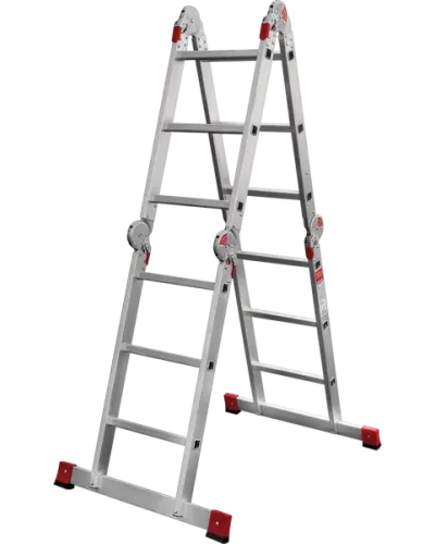 Профессиональный трансформер «4 в 1» с увеличенной шириной 400 мм. Варианты использования:: приставная лестница, Г-образная с опорой на стену, двухсторонняя стремянка, помост.