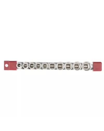 В набор входят 6-гранные торцевые головки на планке под квадрат 3/8" следующих размеров: 8 мм, 10 мм, 11 мм, 12 мм, 13 мм, 14 мм, 15 мм, 16 мм, 17 мм и 19 мм. Материал – CrV.