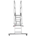 • Две жёсткие поперечные траверсы обеспечивают устойчивость лестницы. Траверсы телескопические, с изменяемой длиной для создания максимально широкой площади опоры. Траверсы снабжены колёсными опорами 125×30 мм с тормозами для удобства перемещения и быстрой подготовки к использованию.