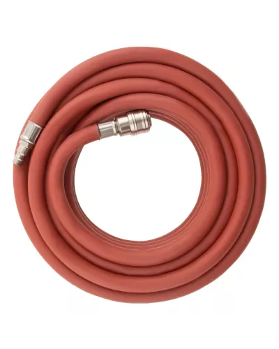 Пневматический армированный резиновый шланг Stels 57021, 10 х 16 мм, длиной 10 м, с быстросъемами, служит для подключения пневматического оборудования к компрессору и выдерживает давление до 24 бар. Изготовлен из резины и армирован капроновой нитью, что обеспечивает высокую устойчивость к механическому воздействию и пережатию, а также к перепадам температур. Может использоваться для прокладки воздушной магистрали. Шланг пригодится на производстве, строительной площадке и в автосервисе.