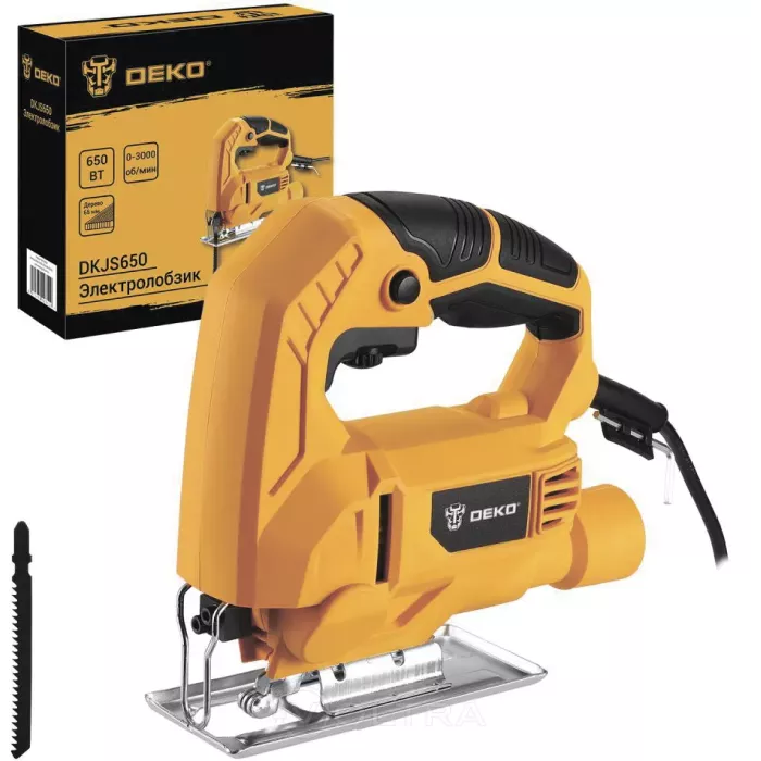 • Электролобзик DEKO DKJS650 используется для распиливания дерева, металла, пластика, резины при отделочных или ремонтных работах.