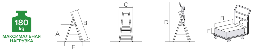 Артикул Ступ, A, м B, м C, м D, м E, м F, м MAX, кг Вес, кг