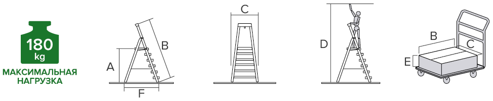 Артикул Ступ, A, м B, м C, м D, м E, м F, м Макс, кг Вес, кг