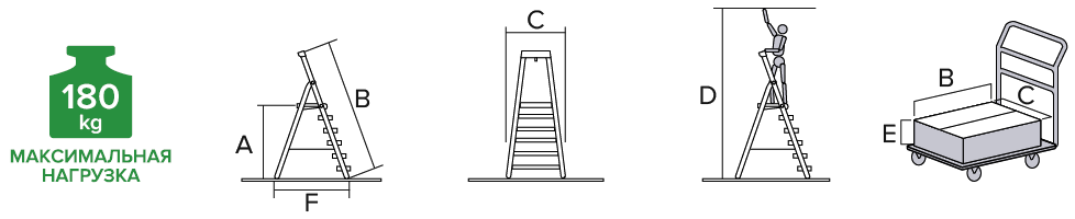 Артикул Ступ. A, м B, м C, м D, м E, м F, м Макс, кг Вес, кг