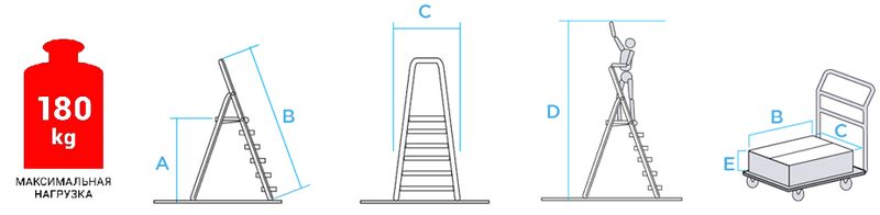 Артикул Ступени A, м B, м C, м D, м E, м Вес, кг Максимальная