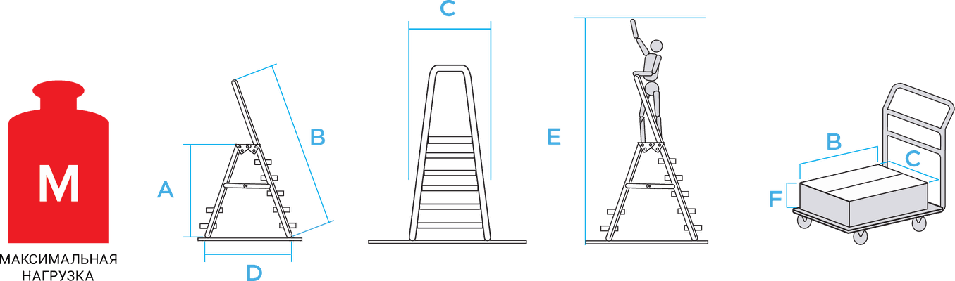 Артикул Ступ. A, м B, м C, м E, м F, м D, м М, кг Вес, кг