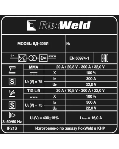 • Сварочный аппарат FOXWELD ВД-306И – 1 шт.;