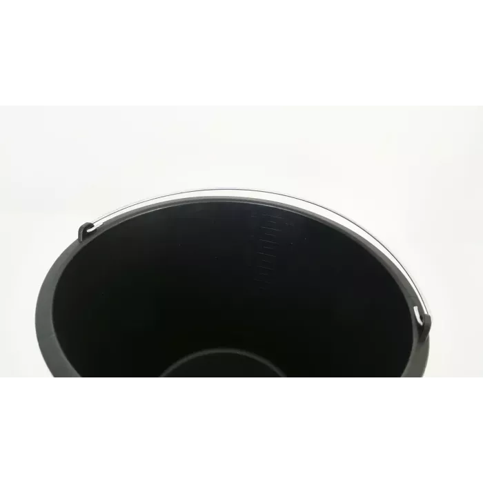 Изготовлено из термопластичного материала с добавлением эластомера, что позволяет ведру выдерживать нагрузку, возникающую во время строительных работ. Оно легче, чем металлические аналоги, и не подвержено ржавчине. Внутри ведра имеется измерительная шкала.
