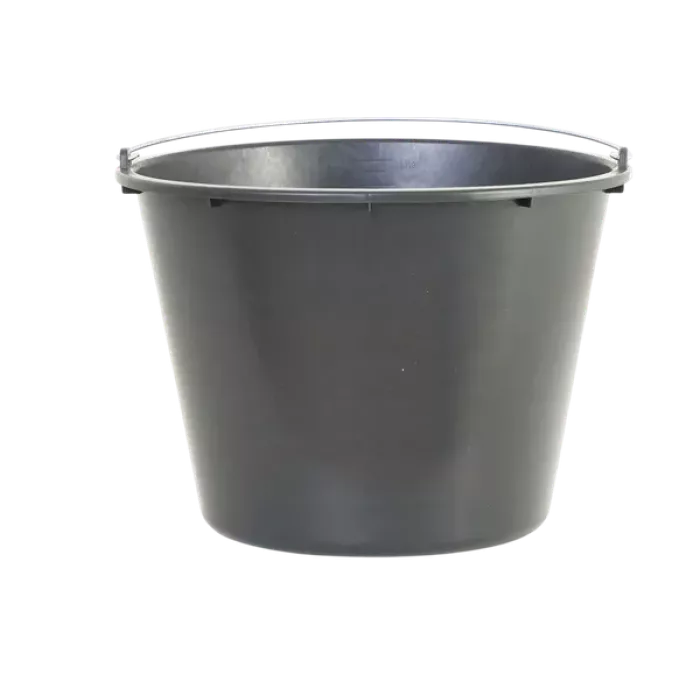 Ведро для строительных нужд ёмкостью 20 литров, обладающее повышенной стойкостью к ударам, оснащено ручкой из оцинкованной стали.