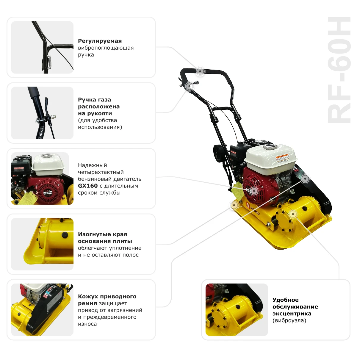 Основные характеристики Виброплита NORSU RF-60H (колесный комплект)