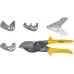 Многофункциональные ножницы, предназначенные для резки шлангов, труб, лент и других технических материалов. В комплект входят матрицы для резки шлангов диаметром 16,19 и 25 мм, резки под углом 90 ° из пластика, плоская и плоская матрица с угловой шкалой. Корпус изготовлен из стали, матрицы - из сплава на основе алюминия и цинка. Лезвие из прецизионной высокоуглеродистой стали. Ручки в виниловых ножнах. Общая длина 220 мм.