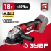 Описание ЗУБР 18В, без АКБ, в коробке, углошлифовальная машина УШМ-18-125 Мастер